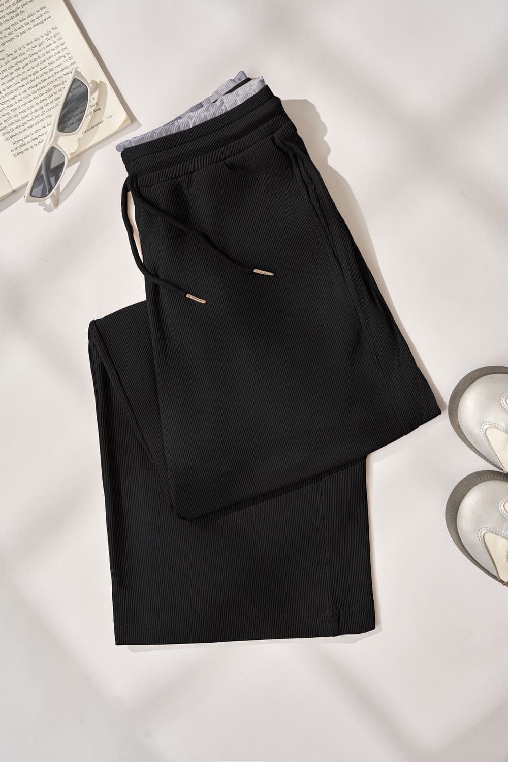 Quần suông tăm phối cạp đôi Younger by Cardina