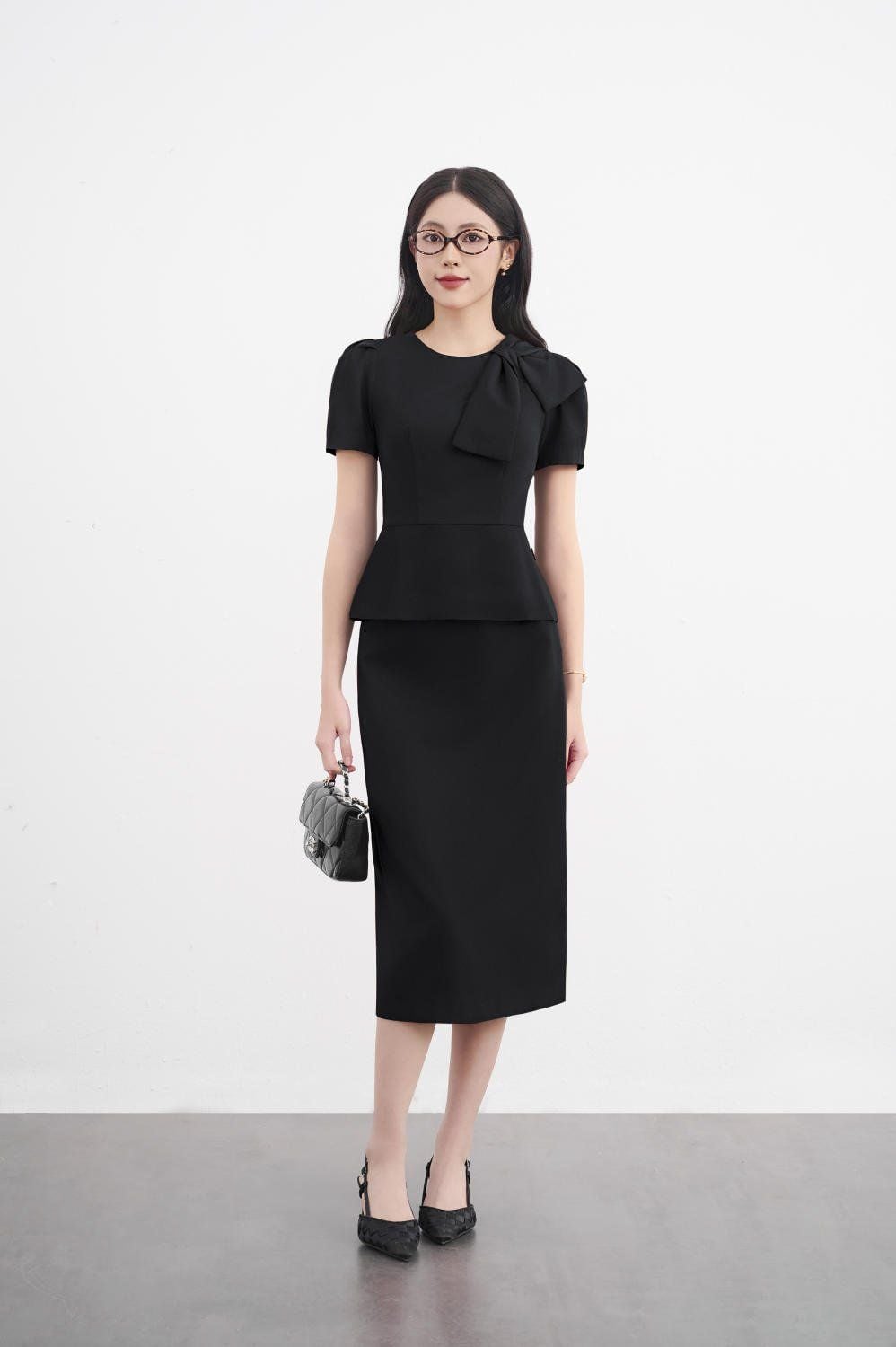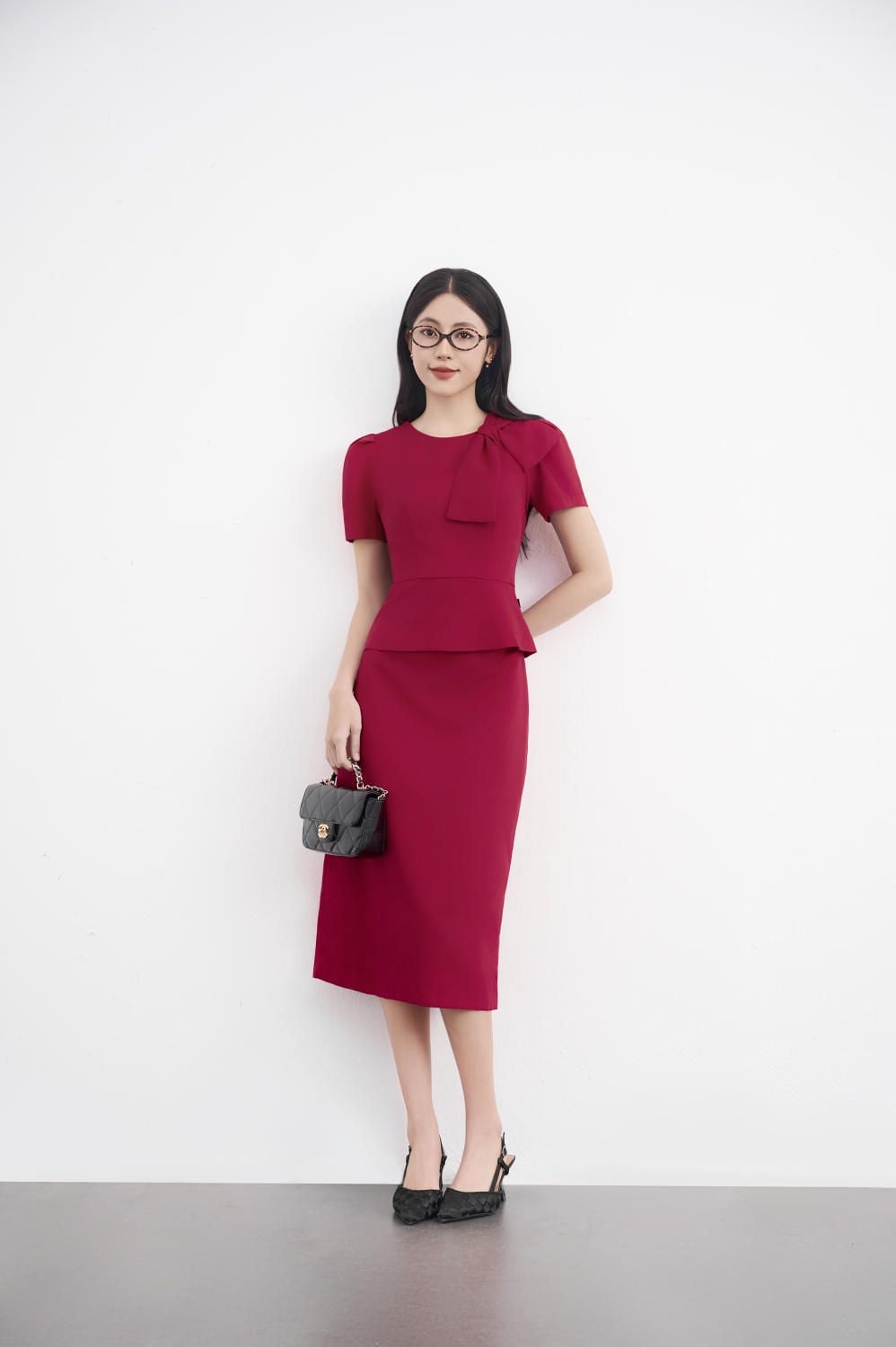 Thiết kế Peplum cực kỳ tôn dáng, mix cùng chân váy dáng A đứng từ CARDINA sẽ là sự lựa chọn hoàn hảo của mọi quý cô công sở. Điểm nhấn cổ nơ cách điệu cùng 2 gam màu đỏ và đen cơ bản sẽ giúp tôn trọn vẻ ngọt ngào nữ tính của nàng.